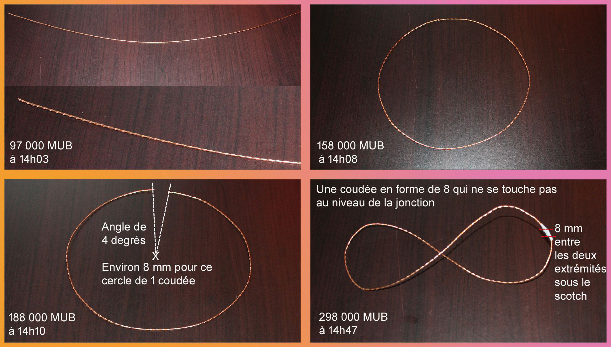 Certaines personnes vous disent de faire toucher les brins au croisement du huit. C'est une erreur, cela ne fonctionne pas, vous avez une grosse perte d'énergie. Les brins doivent être isolés entre eux, PAS de COURT CIRCUIT !!! pour une énergie maximale.